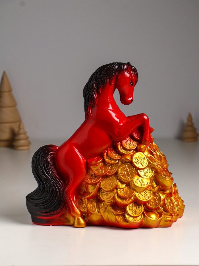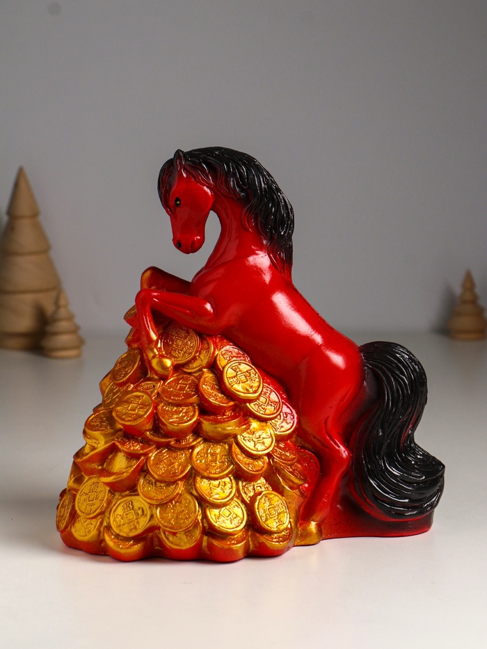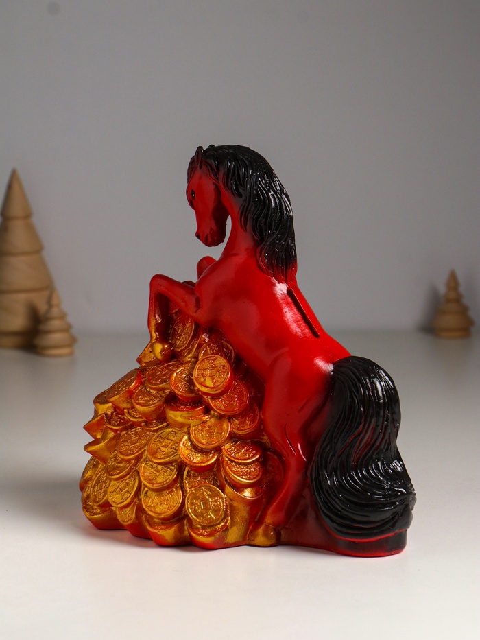 Копилка для денег «Конь на деньгах», гипс, 20×13×20 см, красный