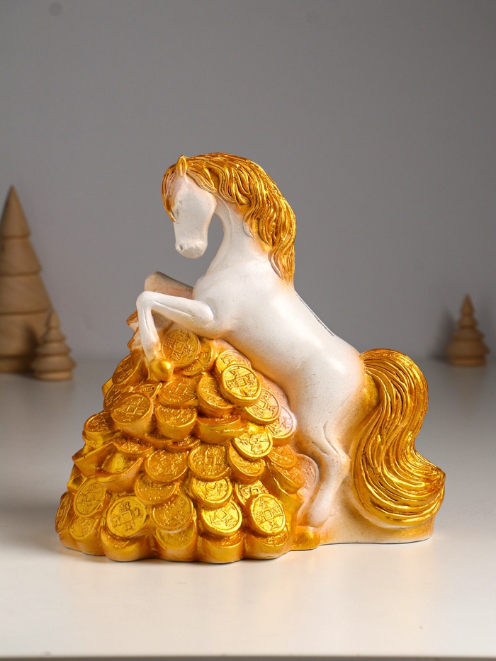 Копилка для денег «Конь на деньгах», гипс, 20×20×13 см, белый с золотом