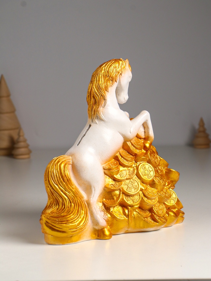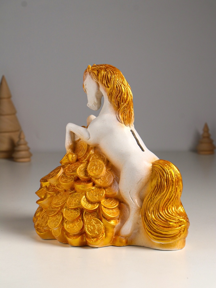 Эта белая с золотом гипсовая копилка в виде лошади — не просто сувенир, а верный помощник для ваших финансов. Изящная фигурка станет элегантным акцентом в интерьере и научит откладывать деньги с удовольствием. Закрытый тип конструкции помогает беречь накопления для действительно важной цели.