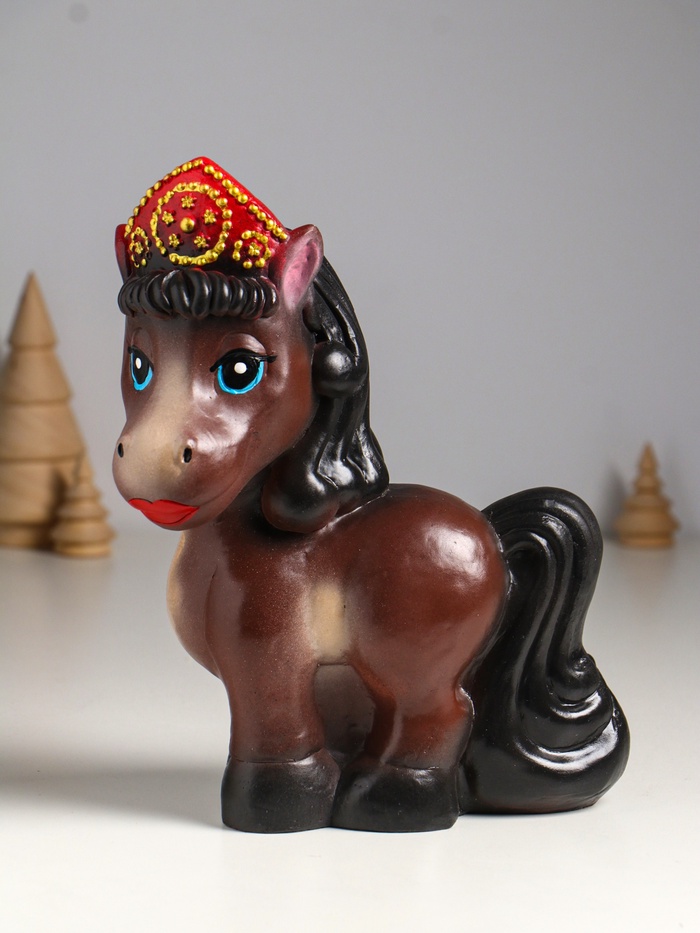 Копилка для денег «Лошадь в кокошнике», гипс, 23×17.5×10 см, коричневый