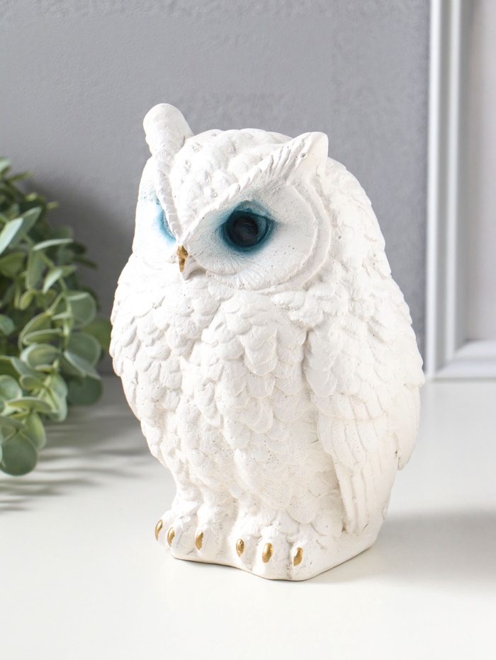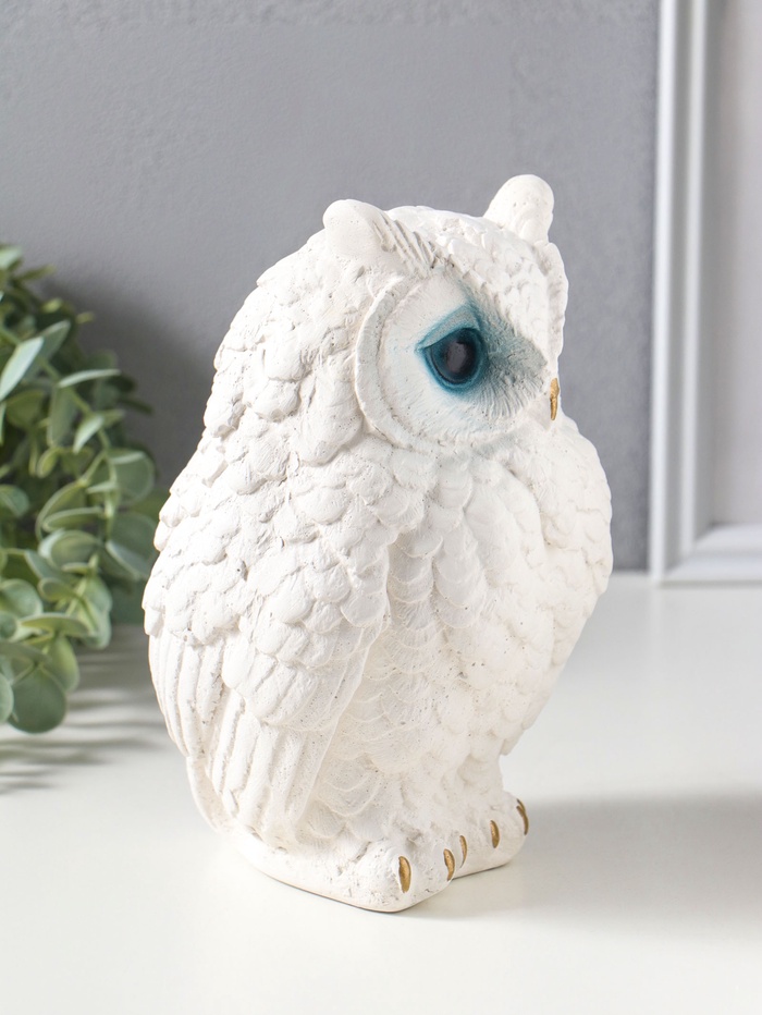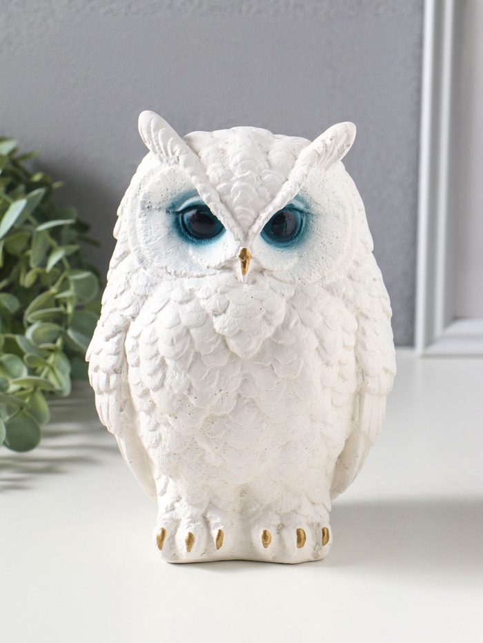 - Изящный дизайн полярной совы из гипса с аккуратной покраской делает её стильным элементом интерьера.