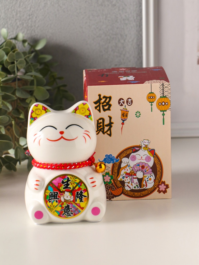 Эта керамическая копилка в виде знаменитого японского кота с поднятой лапой — символ, что в доме всегда будут водиться деньги. Белоснежная фигурка с яркими, жизнерадостными акцентами и традиционным барабаном создаёт ощущение праздника и удачи. Каждый раз, опуская монету в открытую прорезь, вы не просто откладываете деньги, а совершаете маленький ритуал на привлечение благополучия.