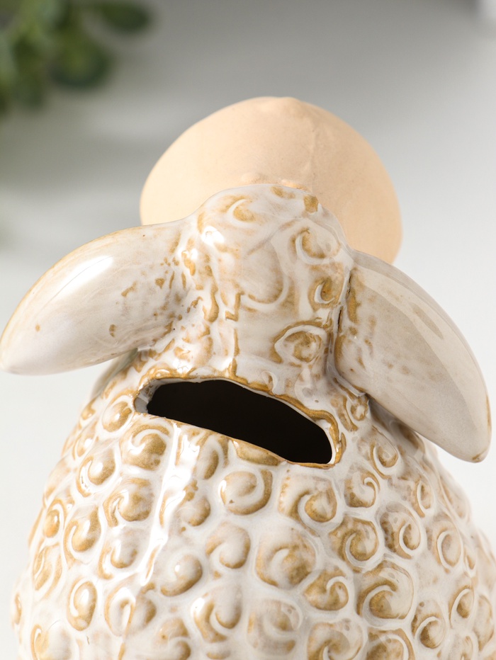 Копилка для денег керамика «Кудряш бараш», беж, 11.6×11.5×12 см