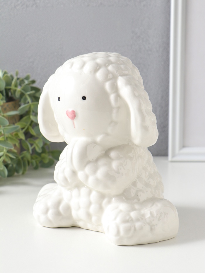Копилка для денег керамика «Милый барашек с сердцем», белая, 17×11×15.1 см
