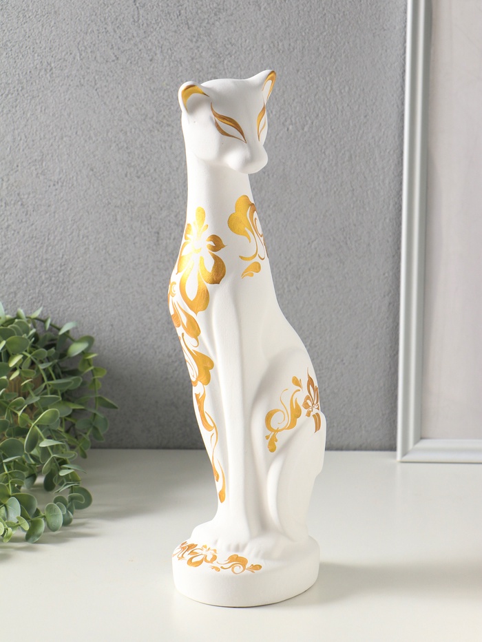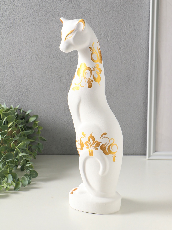 - Сдержанный белый цвет с золотистыми акцентами делает её универсальным украшением для полки, комода или рабочего стола.