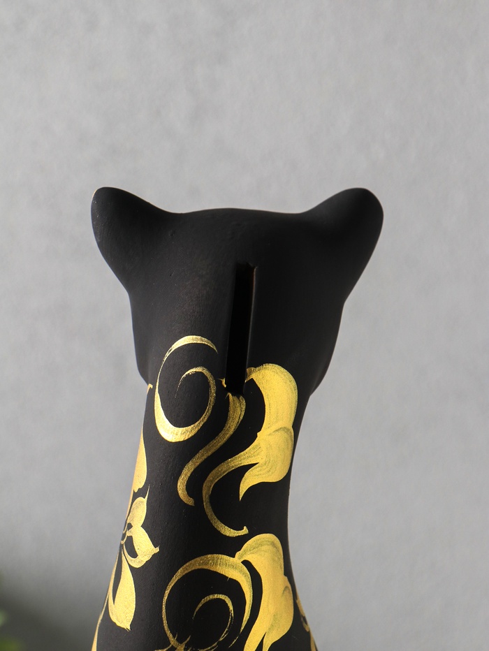Эта копилка в виде элегантной чёрной кошки — не просто ёмкость для монет, а стильный аксессуар для интерьера. Её скульптурная форма и глубокая матовая глазурь притягивают взгляд, превращая процесс накопления в эстетический ритуал. Статуэтка станет талисманом финансового благополучия и мудрым напоминанием о цели.
