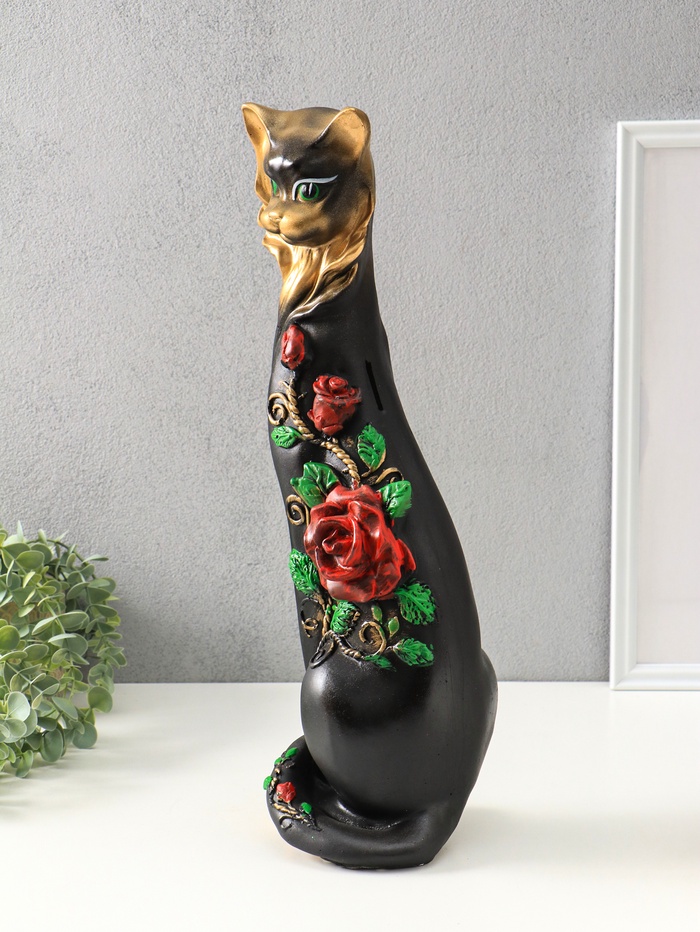 Копилка "Кошка Маркиза с большой розой , 46х18х15 см