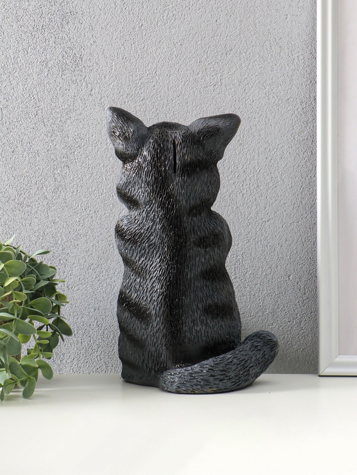 - Статусная копилка в виде сидящего сибирского кота станет элегантным акцентом в комнате.