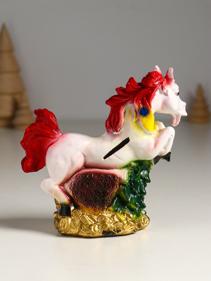 Копилка "Лошадь с ёлкой" 13х13х6,5 см, белый