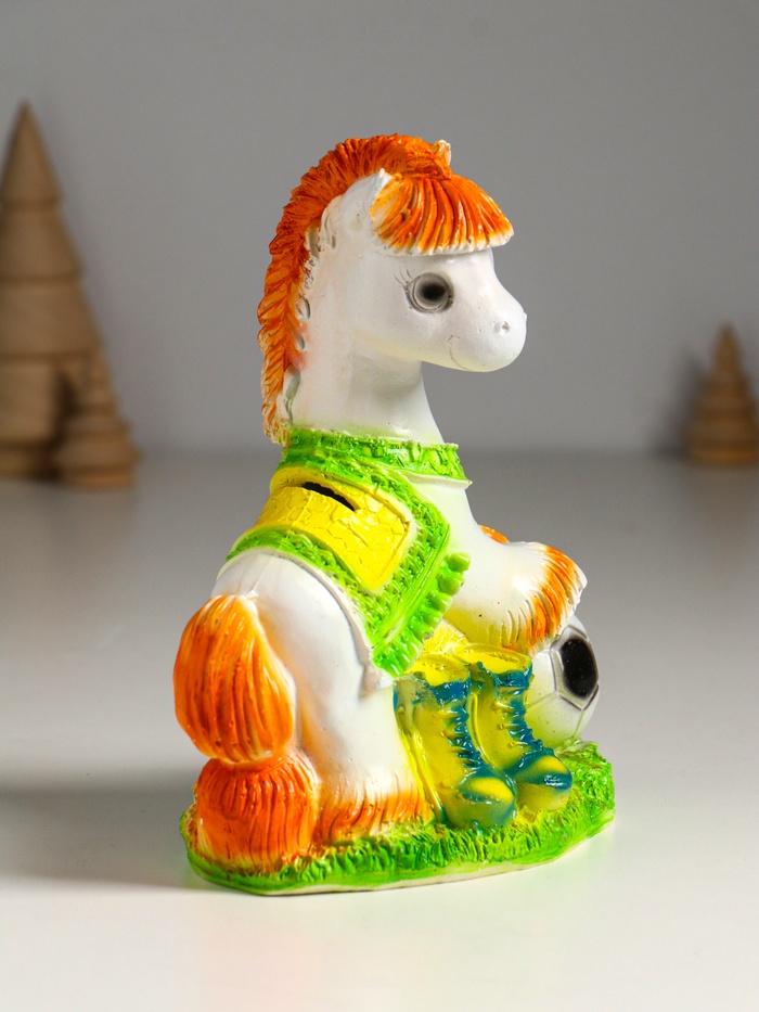Копилка для денег «Лошадь с мячом», гипс, 16.5×14×7.5 см, белый
