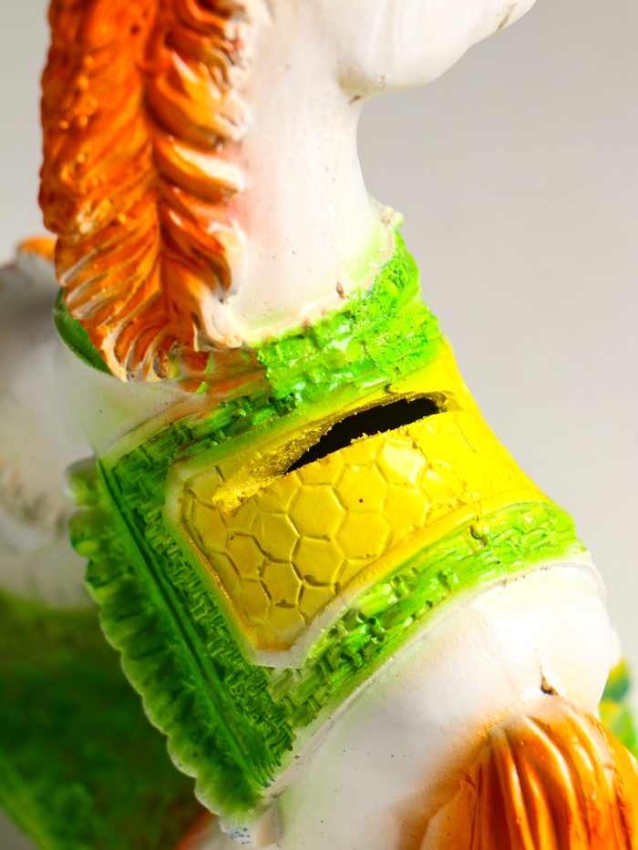 Эта гипсовая копилка в виде лошади — стильный и практичный способ откладывать деньги на важные цели. Фигурка лошади с мячом, выполненная в классическом белом цвете, станет элегантным украшением интерьера в детской комнате или кабинете. Закрытый тип конструкции учит финансовой дисциплине, ведь для извлечения накоплений не предусмотрено специальное отверстие.