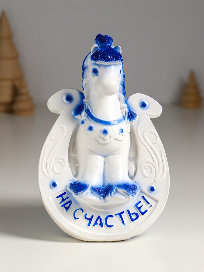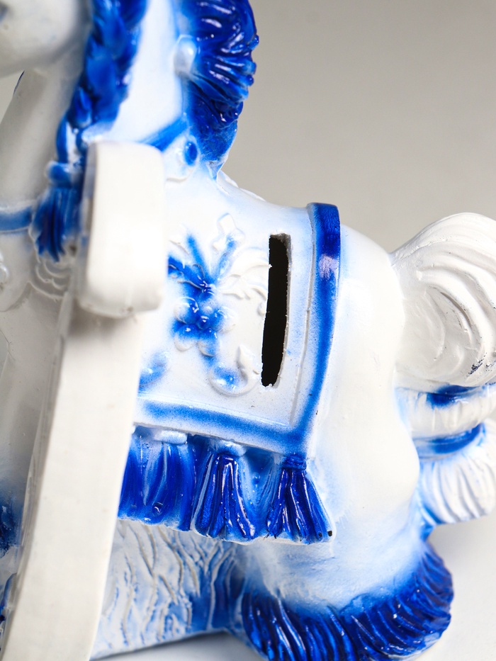 Копилка "Лошадь с подковой" 16х10,5х11 см, бело-голубой