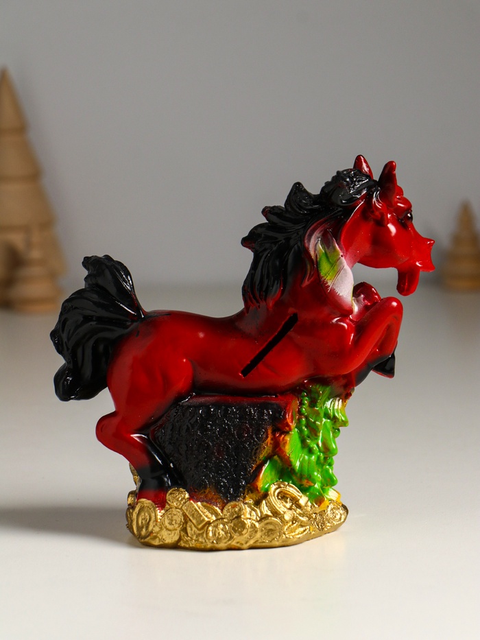Копилка для денег «Огненный конь с ёлкой», гипс, 13×13×6.5 см