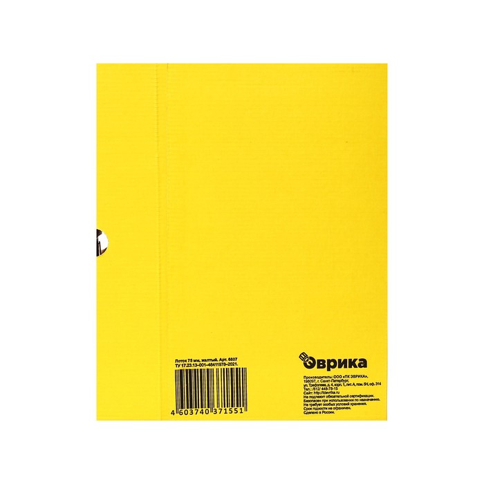 Технические характеристики Короб архивный с клапаном А4 Calligrata, 75 мм, микрогофрокартон, до 700 листов, желтый