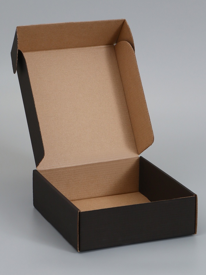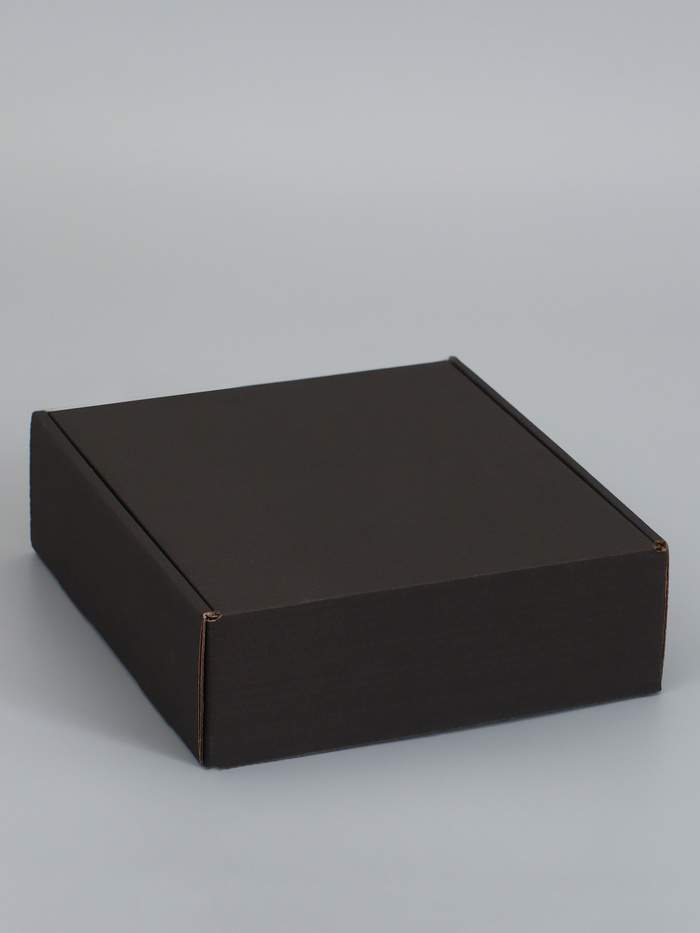 Строгая элегантность и универсальная надежность в квадратном формате! Самосборная коробка из микрогофрокартона черного цвета, 21×21×7 см – прочное и стильное решение для упаковки подарков, безопасной отправки посылок и организации хранения. Лаконичный черный дизайн и усиленный квадратный каркас делают ее идеальным выбором для любого повода, подчеркивая статус содержимого.