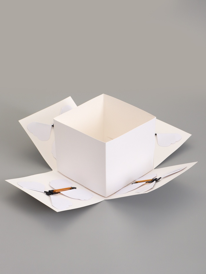 Технические характеристики Коробка-сюрприз подарочная «Бабочки» белая, с вылетающими бабочками, 15×14.8×12.5 см