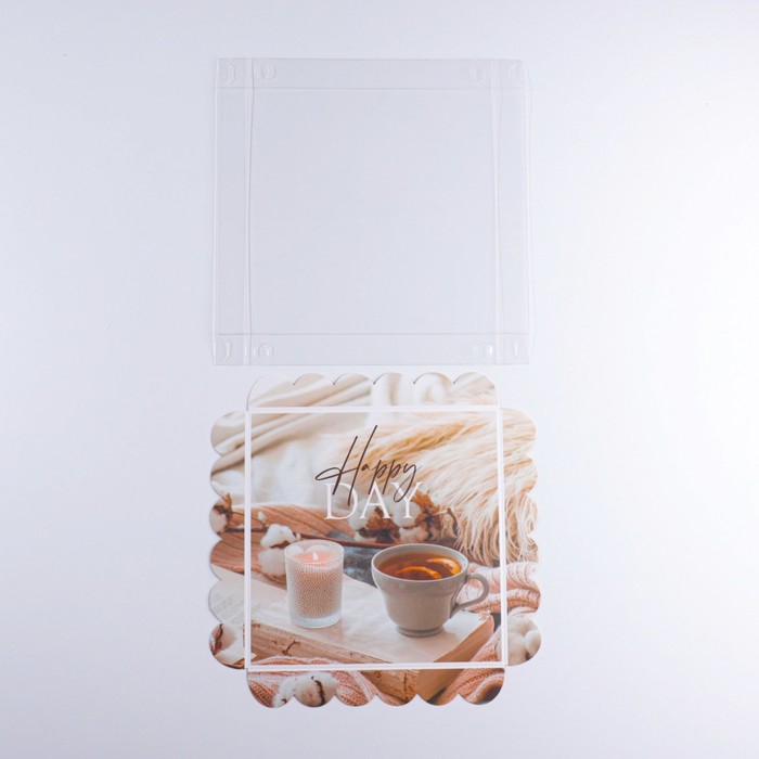 Коробка для печенья, кондитерская упаковка с PVC крышкой, «Уютный вечер», 21 х 21 х 3 см
