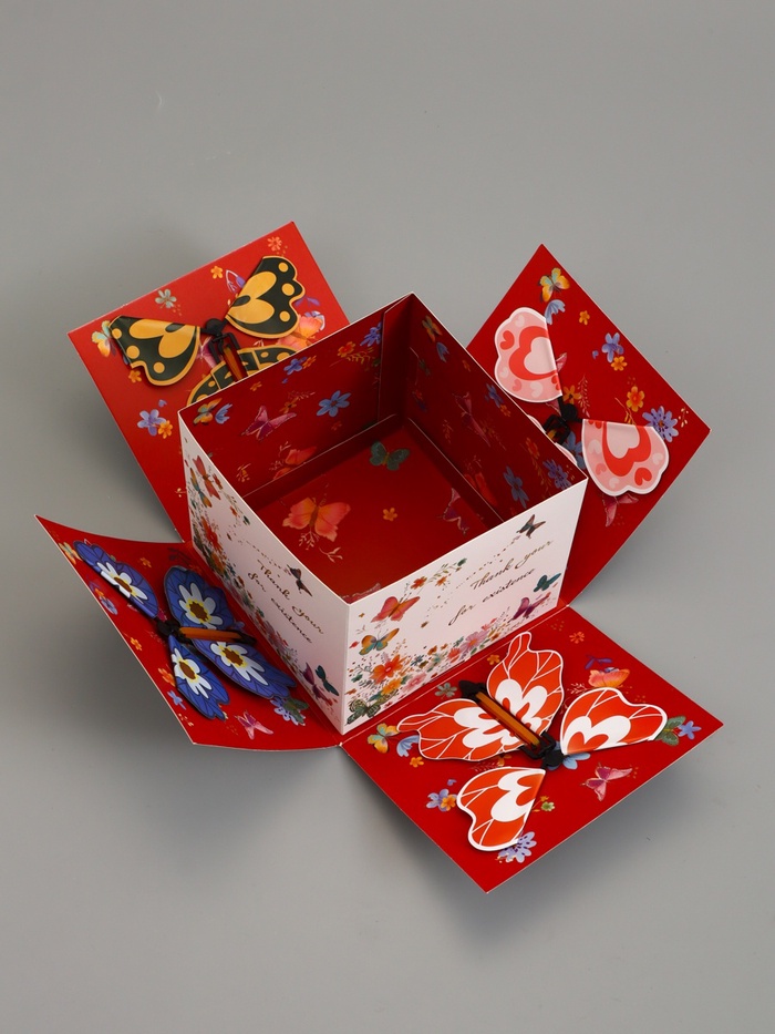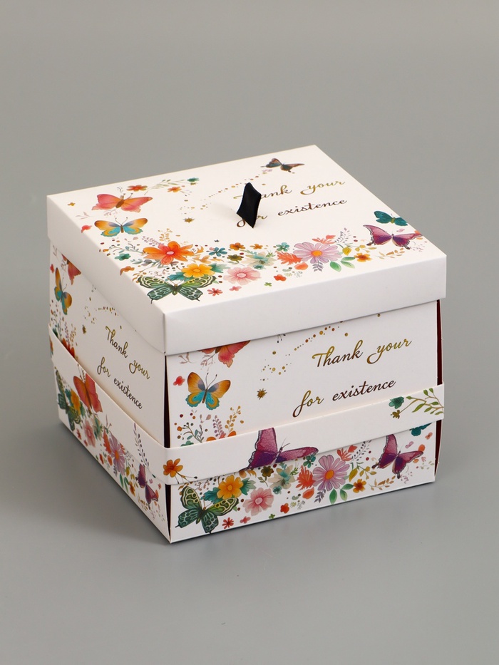Коробка подарочная "Бабочки, Спасибо" 14,5 х 14,5 х 12,7 см