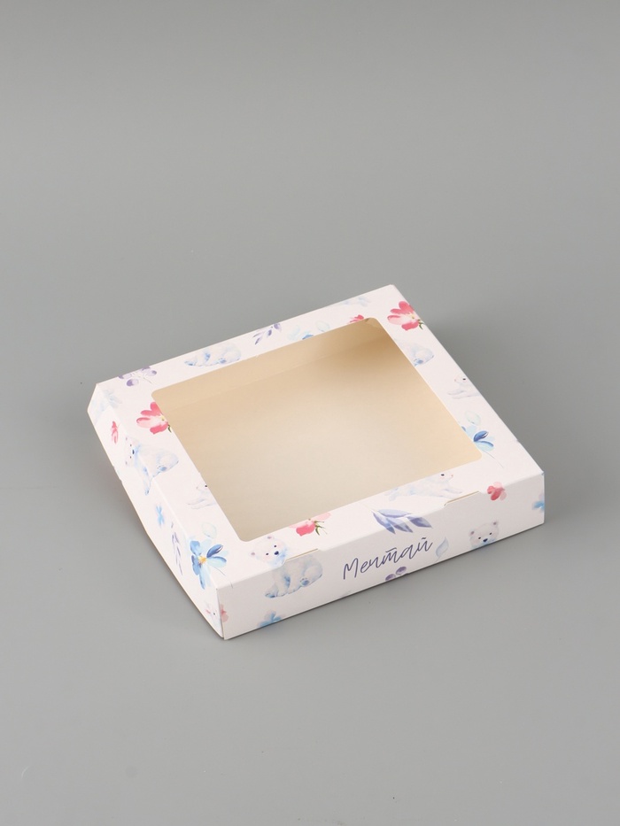 Коробка подарочная с окном «Мечтай», 20×20×4 см, самосборная