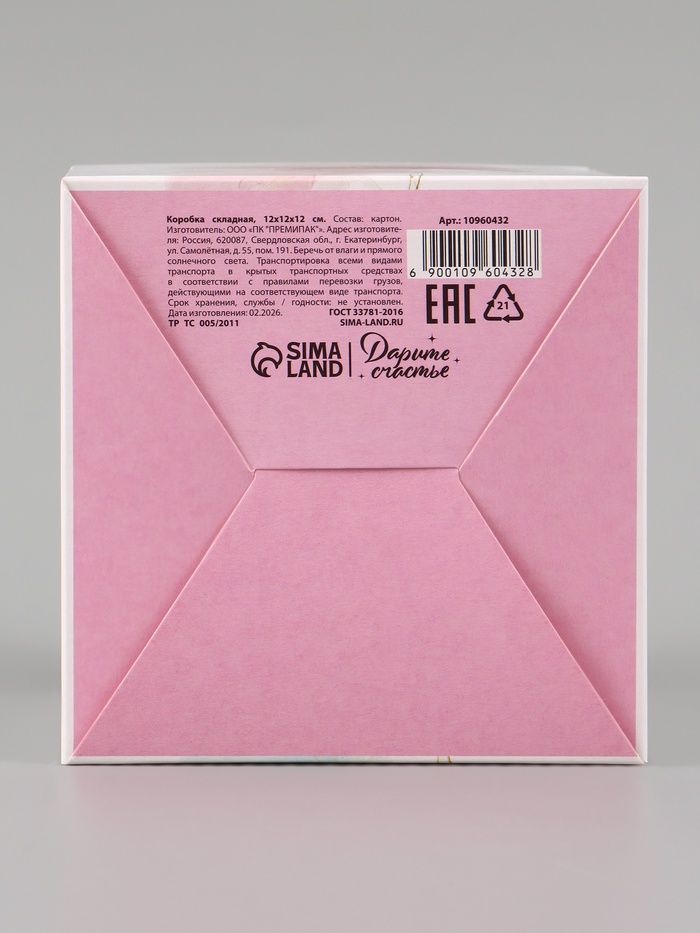Коробка подарочная самосборная «Самой красивой», 12×12×12 см, с лентой