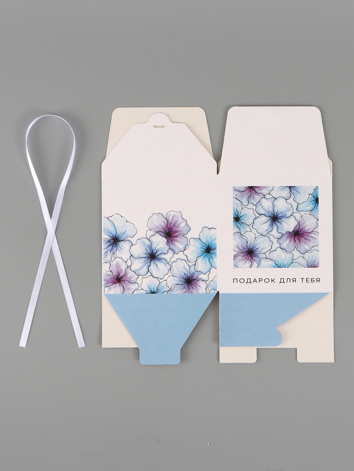 - Художественный образ: Акварельный рисунок цветов на белом фоне смотрится свежо и женственно. Коробка не требует дополнительного декора — ленты или открытки, достаточно просто завязать бант или оставить как есть.