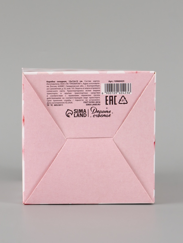 - Надёжность и форма: Плотный картон 250 г/м² выдерживает вес до 350 грамм. Коробка сохраняет форму при транспортировке и остаётся аккуратной в момент вручения.