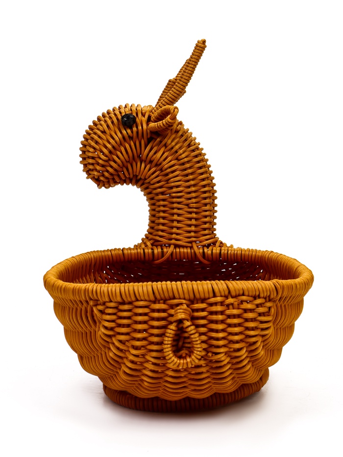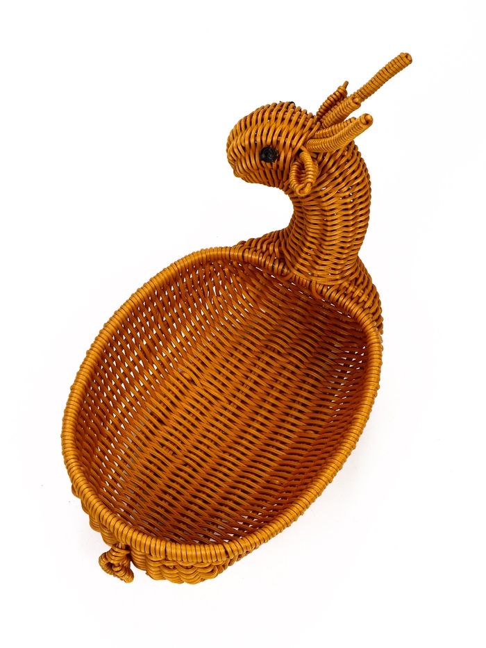 - Дизайнерский элемент декора: форма оленя превращает корзину в самостоятельное украшение для комнаты. Она становится смысловым центром композиции на полке или комоде.