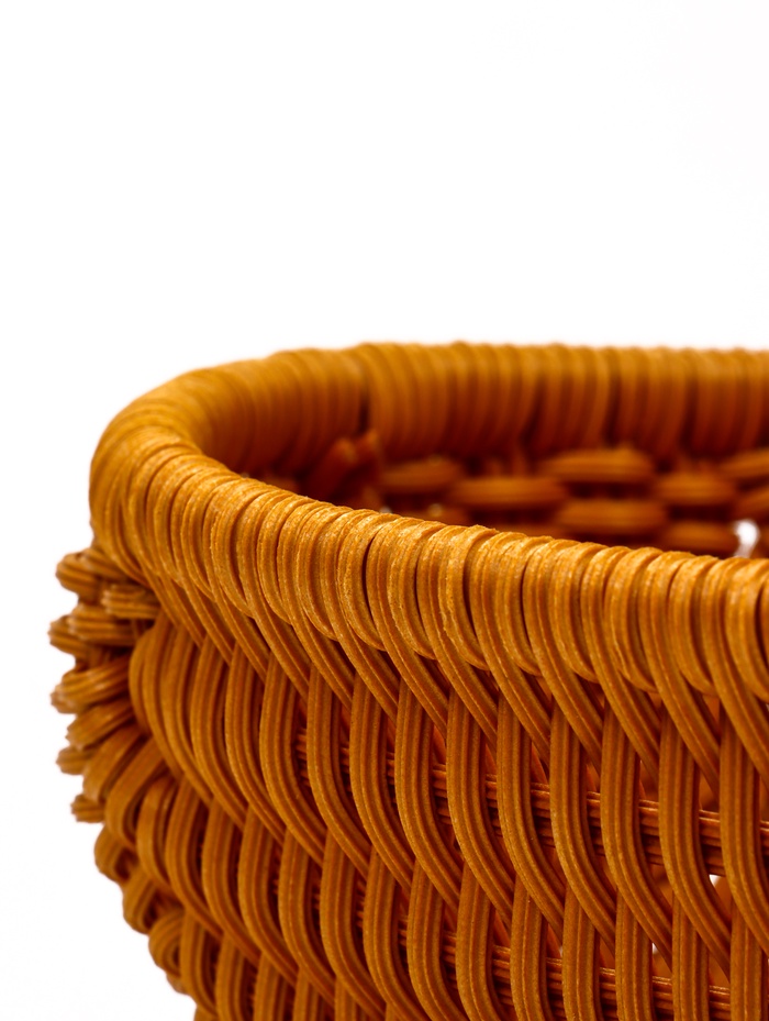 - Надёжность пластикового плетения: материал имитирует фактуру натуральной лозы, сохраняя лёгкость и долговечность. За корзиной легко ухаживать, она подходит для помещений с разным уровнем влажности.