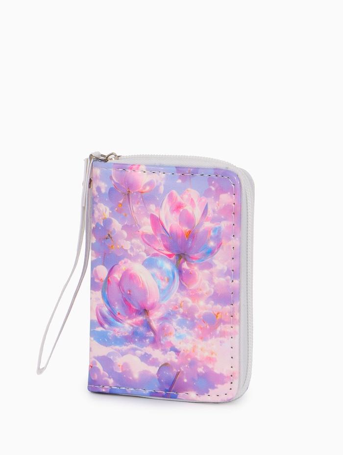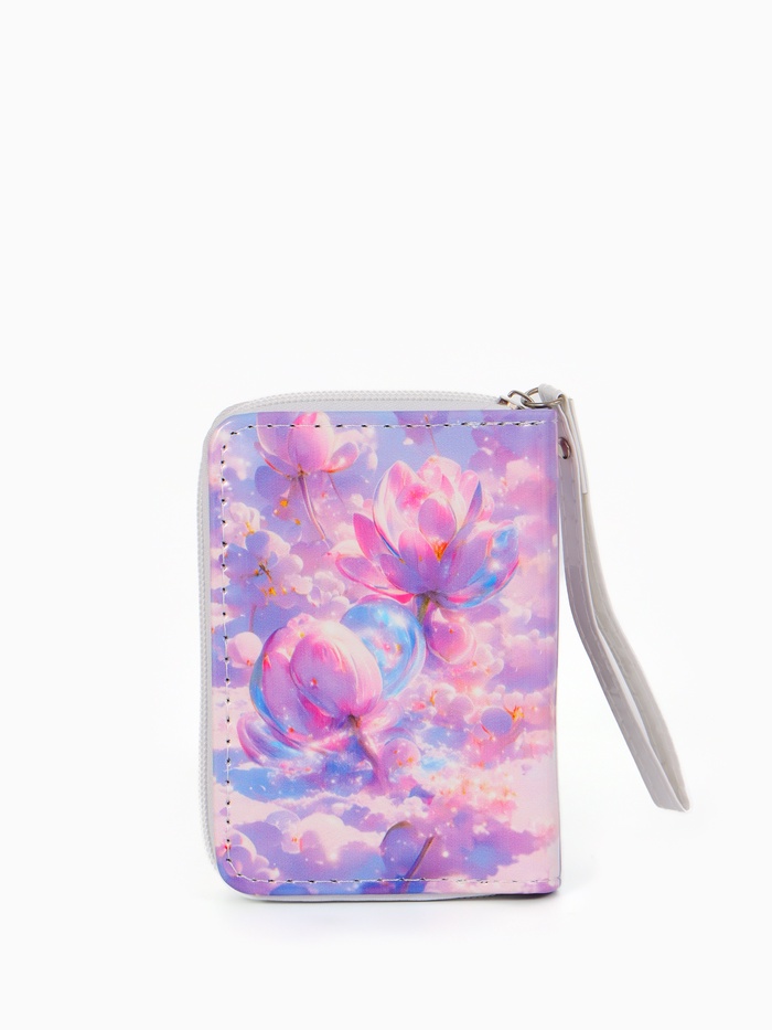 Женский кошелёк в сиреневых тонах с цветочным принтом создаёт лёгкое и романтичное настроение. Его компактный размер удобно помещается в ладони и не загромождает пространство в сумке, сохраняя при этом всё необходимое. Продуманная организация внутреннего пространства помогает быстро находить нужные вещи.