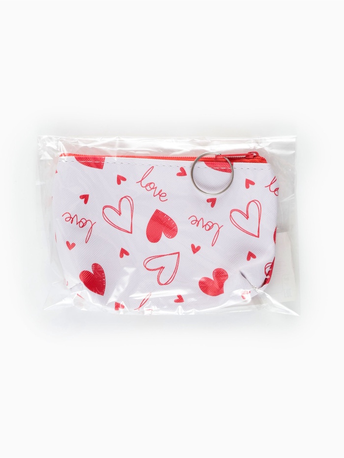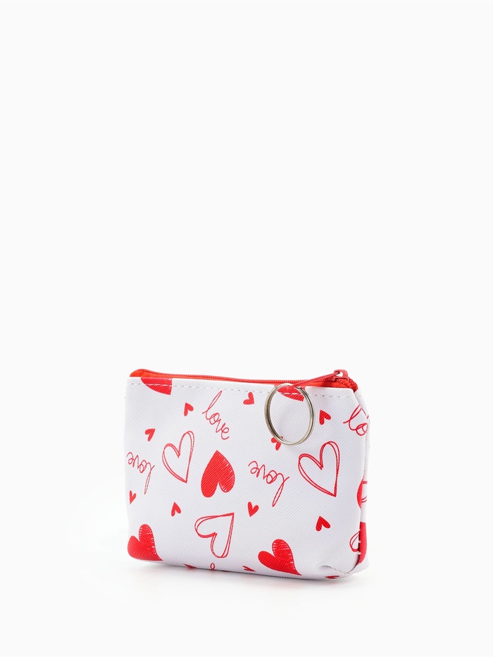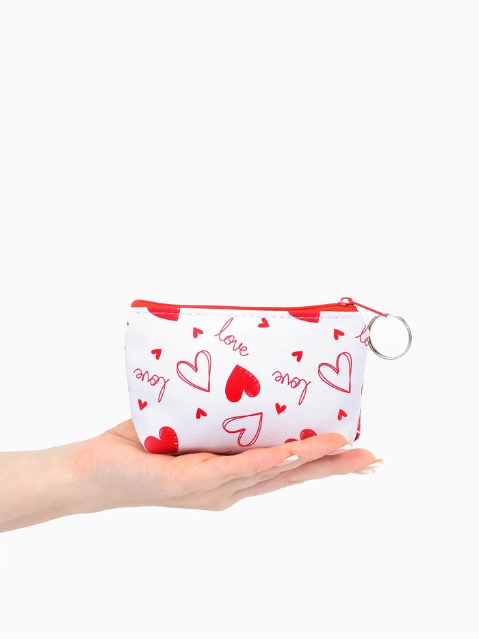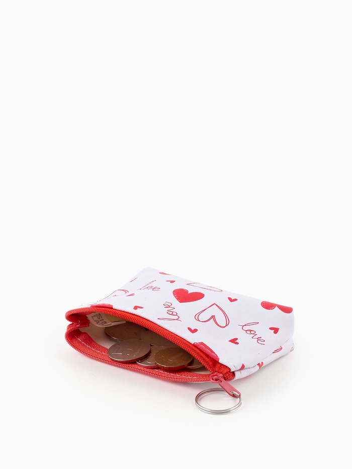 Кошелёк-монетница на молнии, 11×3.5×8.5 см, белый/красный