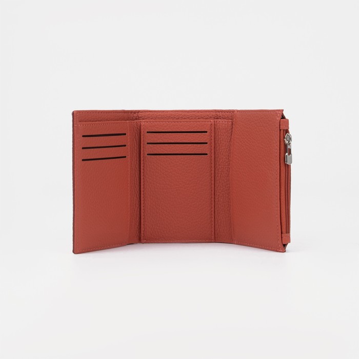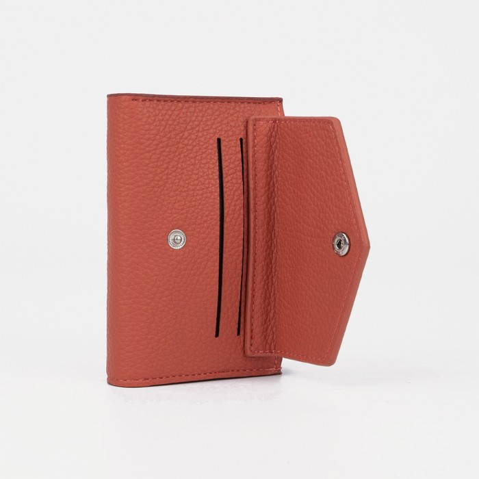 Этот коралловый клатч на магните — компактный и практичный спутник для женщины, которая ценит лёгкость и порядок в повседневных мелочах. Он легко помещается в ладони, но за счёт тройного сложения внутри найдётся место для самого необходимого: банковских карт, купюр и даже смартфона. Отдельный монетник на молнии снаружи защитит мелочь от потерь и позволит быстро достать её без поисков по всему объёму.