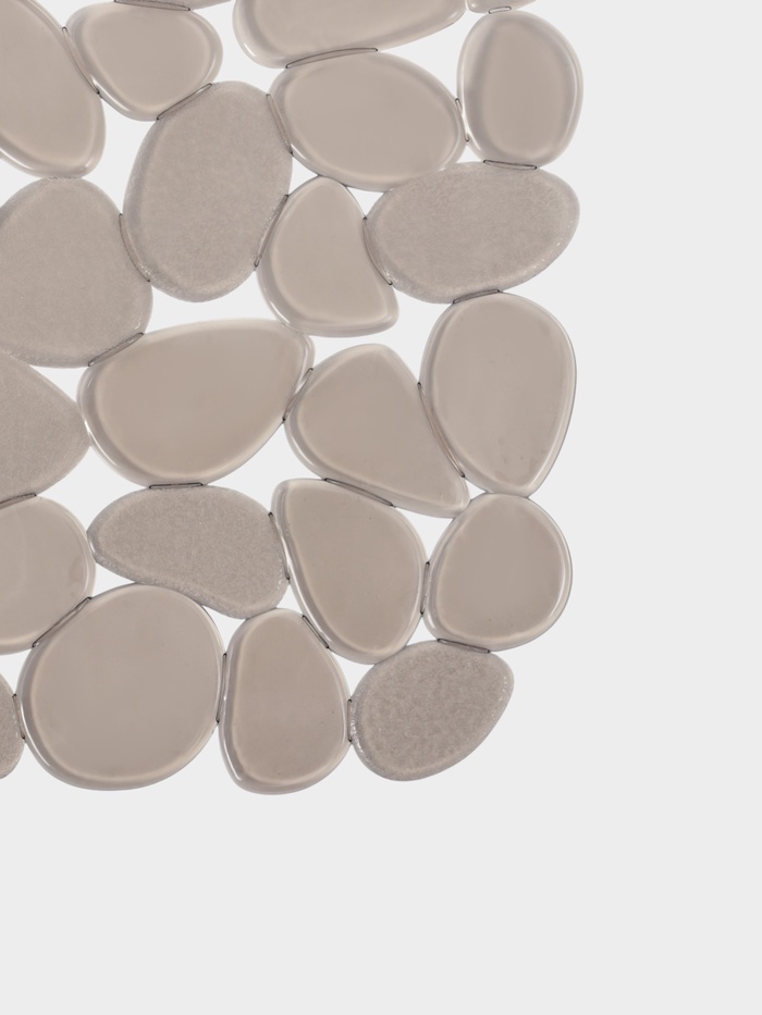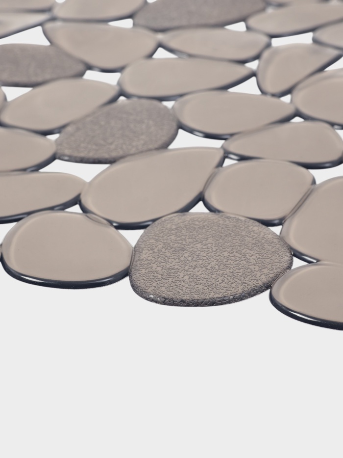 Кухонная раковина ежедневно выдерживает удары тяжёлой посуды, трение от губок и падение ножей. Всё это оставляет на эмали сколы, царапины и потёртости. Этот прямоугольный коврик размером 30×40 см кладётся на дно раковины и работает как амортизирующий барьер. Прозрачный серо-коричневый оттенок делает его почти незаметным, а рисунок «Галька» добавляет интерьеру природной текстуры, не перегружая пространство.