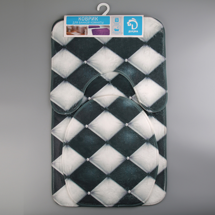 Коврики для ванной и туалета Доляна «Ромбы», 3 шт.: 37×45, 37×45, 45×75 см