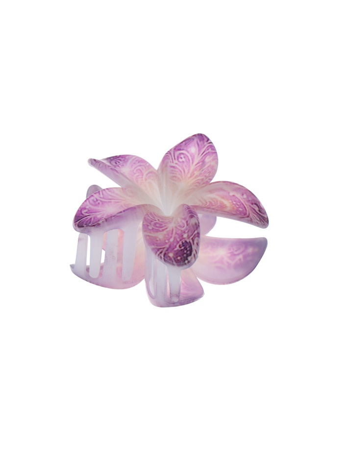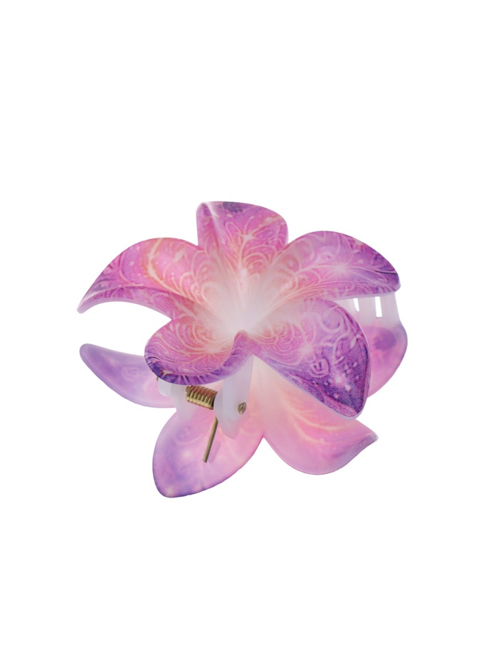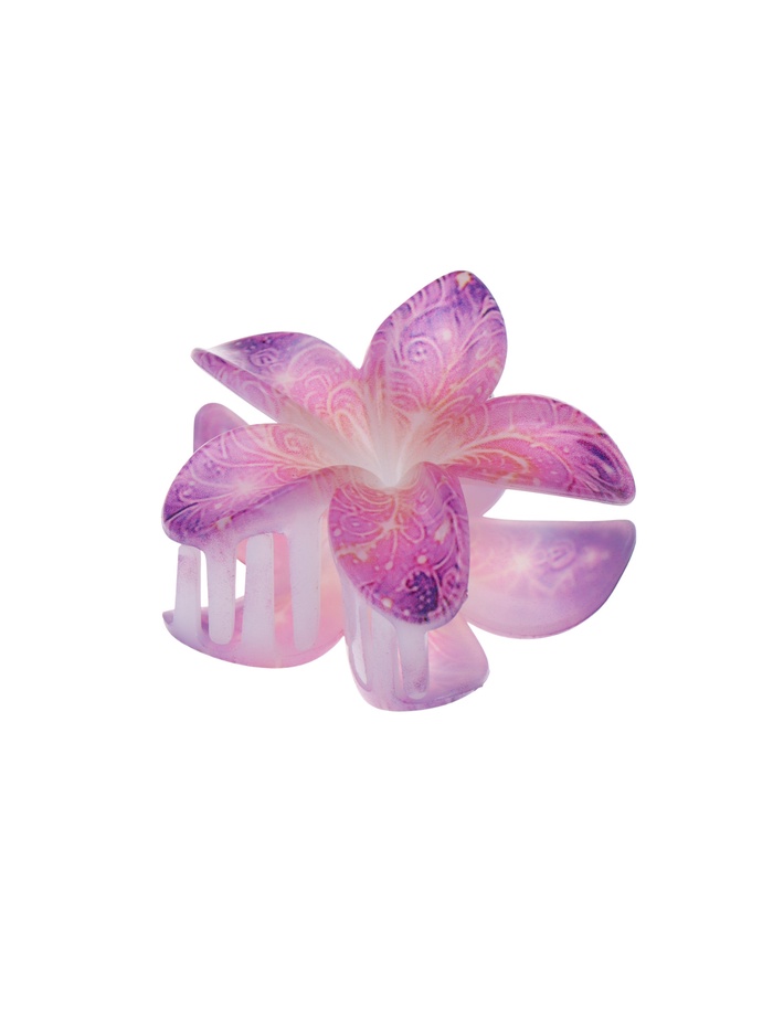 - Изящный декор в виде цветка: Нежный пластиковый цветок добавляет аксессуару женственности и шарма. Он выглядит объемно и реалистично, привлекая внимание и дополняя стиль. Такой зажим легко превращает простую укладку в продуманный образ.