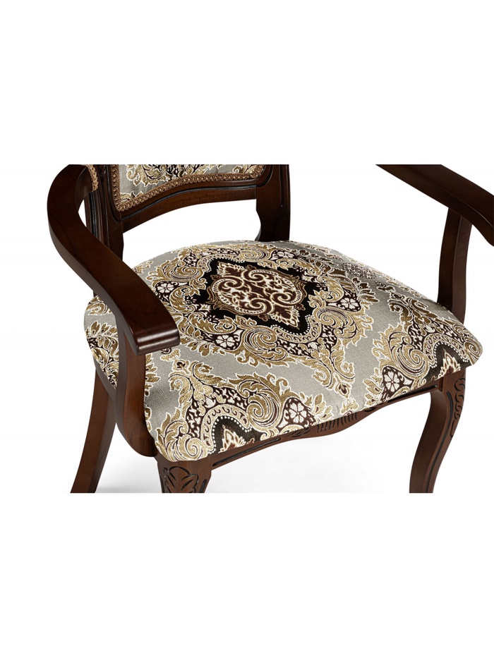 Кресло «Bronte» сочетает элегантный дизайн и удобство для повседневного использования. Каркас из массива дерева обеспечивает прочность и долговечность конструкции, а тканевая обивка сиденья и спинки создаёт комфортное место для отдыха и работы. Тёмно-вишнёвая отделка с патиной придаёт изделию стильный и выразительный внешний вид, подходящий для классических и современных интерьеров.