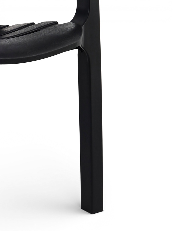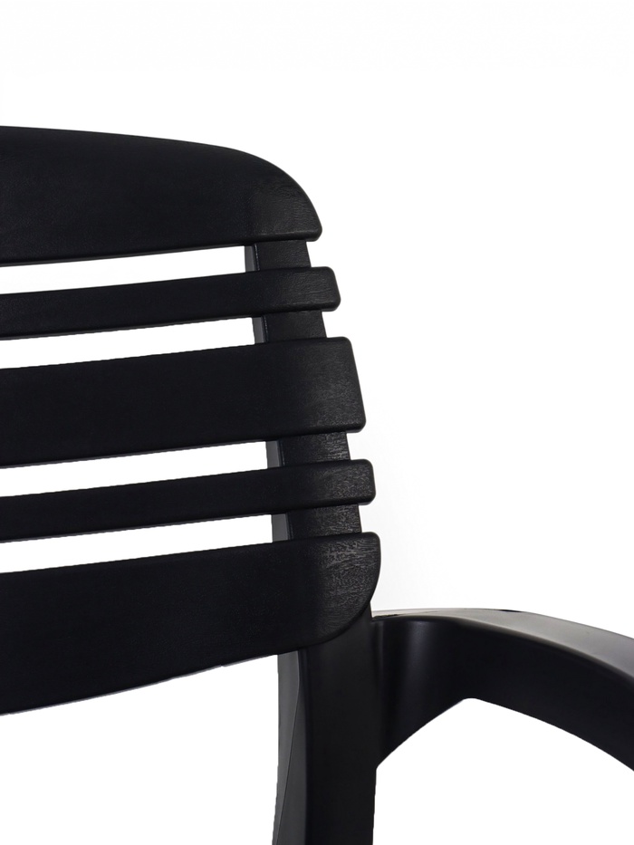 - Практичный материал: пластик не впитывает влагу, легко моется и устойчив к выгоранию. Кресло не нужно заносить в дом после каждого дождя — оно быстро высыхает и готово к использованию.