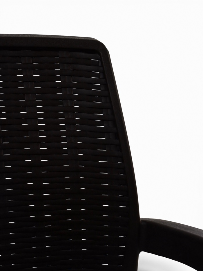 - Комфортная посадка: форма спинки и сиденья обеспечивает удобное положение тела. В кресле удобно сидеть за столом или отдыхать после обеда в тени.