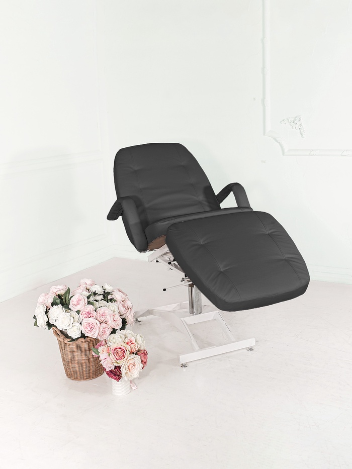 Механическая регулировка ножной части расширяет возможности позиционирования клиента, а усиленные металлические держатели и винтовые соединения повышают прочность конструкции. Кресло выдерживает нагрузку до 200 кг, сохраняя стабильность даже при интенсивной эксплуатации.