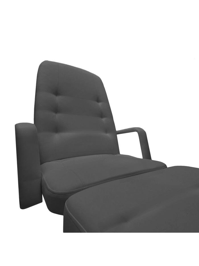 Механическая регулировка спинки и ножной части обеспечивает точную настройку положения клиента, а усиленные металлические держатели ножных секций делают кресло более прочным по сравнению со стандартными моделями. Все соединения выполнены на винтовых креплениях, что повышает надёжность и устойчивость конструкции.