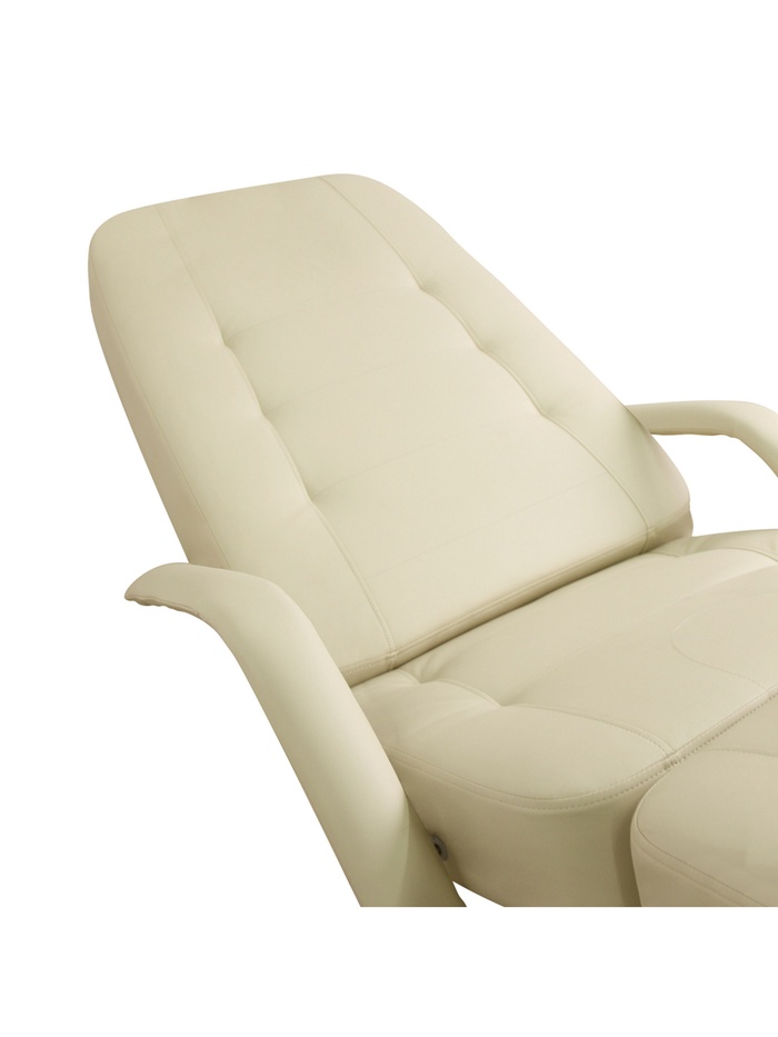 Косметологическая обивка Люкс 1 — обивка имеет одинаковую толщину 11 см и плотность по всей длине ложа, наполнитель специальный поролон средней жесткости. Покрытие обивки, матовая, не скользящая, высококачественная, износостойкая, «дышащая» экокожа производство Турция (50000 циклов, 100% PU полиуретан). Ширина ложа 64 см, длина 180 см. Съемные подлокотники. Косметологическое кресло «УСИЛЕННОЕ»