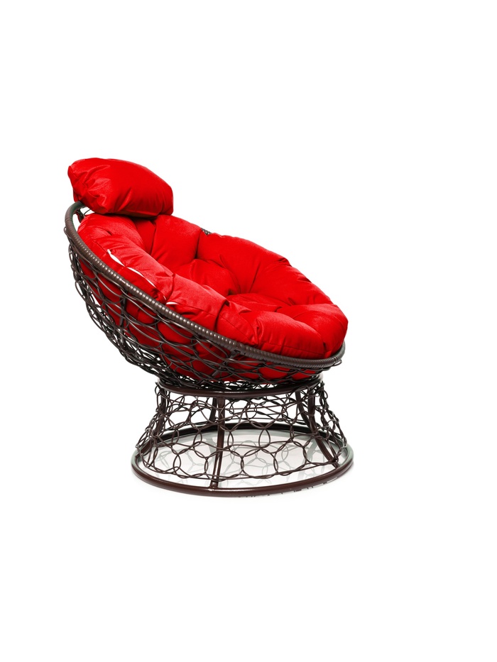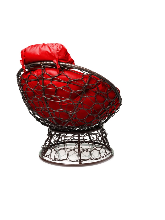 Кресло садовое «Папасан мини», 77×81×68 см, с искусственным ротангом, коричневое, с красной подушкой