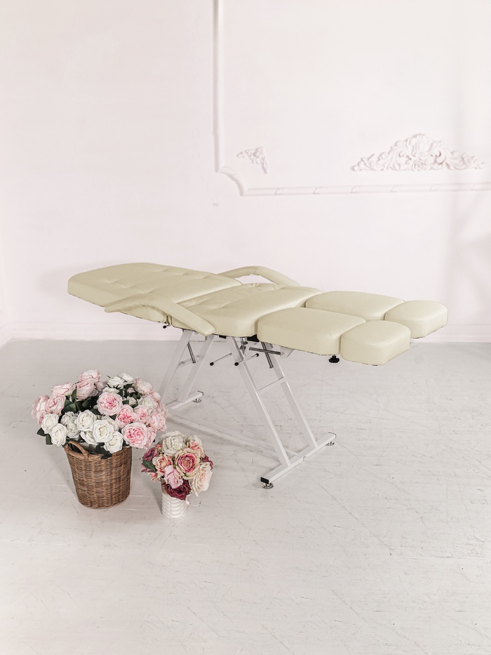 Сиденье поднимается до +15 см, а сиденье и ножные части могут быть выровнены в одну плоскость на высоте до 1,2 м. Это позволяет работать не только сидя, но и стоя, получая удобный доступ к стопе, голени и другим зонам ноги.
