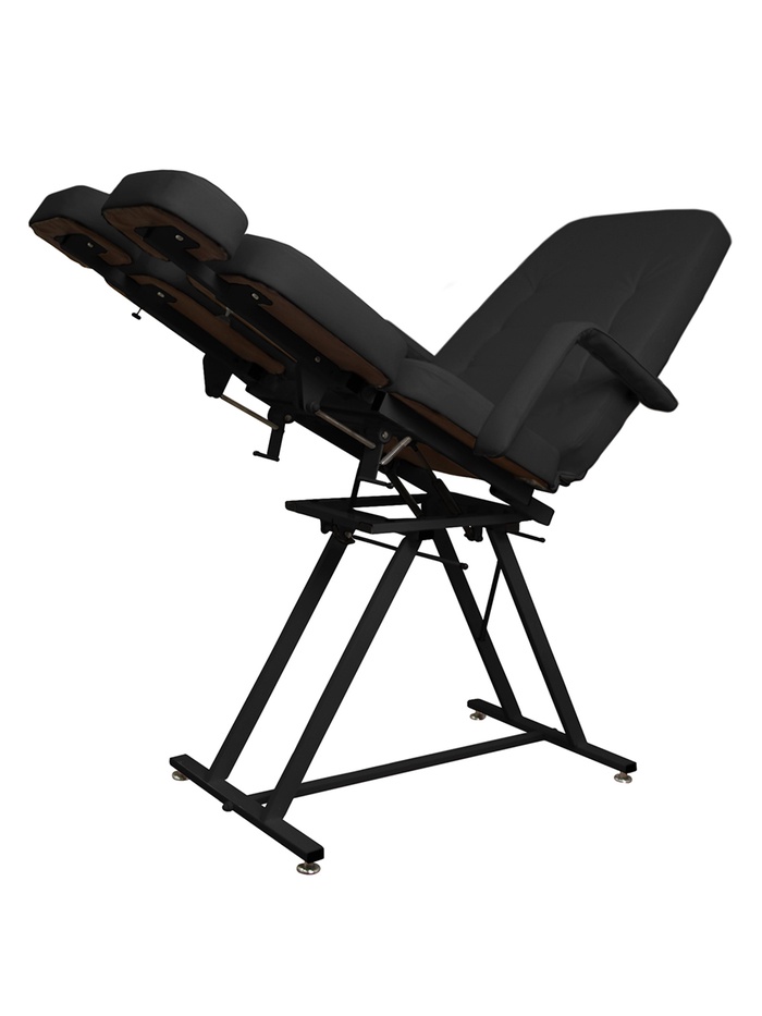 Сиденье поднимается до +15 см, а сиденье и ножные части могут быть выровнены в одну плоскость на высоте до 1,2 м. Это позволяет работать не только сидя, но и стоя, получая удобный доступ к стопе, голени и другим зонам ноги.