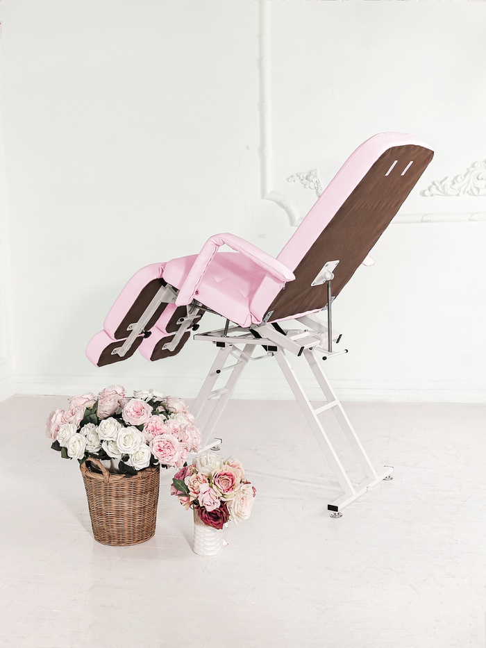 Главное преимущество модели — регулировка угла наклона сиденья. Механизм оснащён пневматическими амортизаторами, которые обеспечивают плавность движения и предотвращают резкое опускание. Мастер может заранее настроить положение кресла под формат процедуры.
