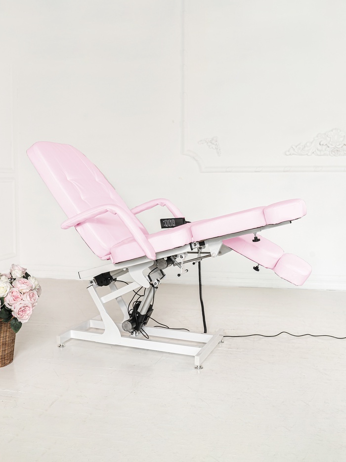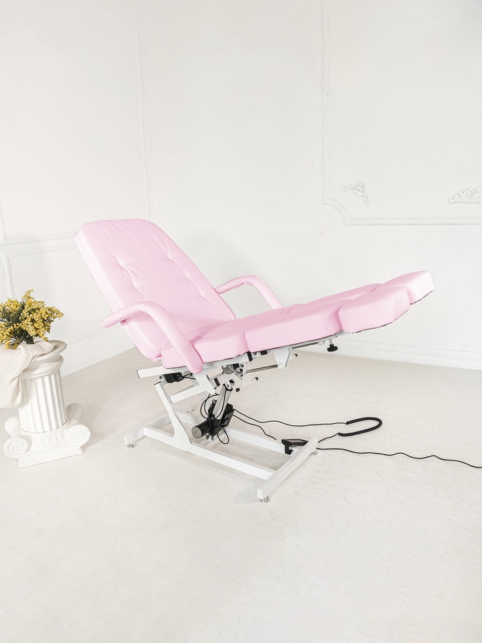 Кресло оснащено тремя электроприводами, позволяющими точно регулировать высоту, наклон спинки и подъём сиденья. Плавная настройка помогает быстро адаптировать положение под клиента и процедуру, сохраняя комфорт и правильную рабочую позу мастера.