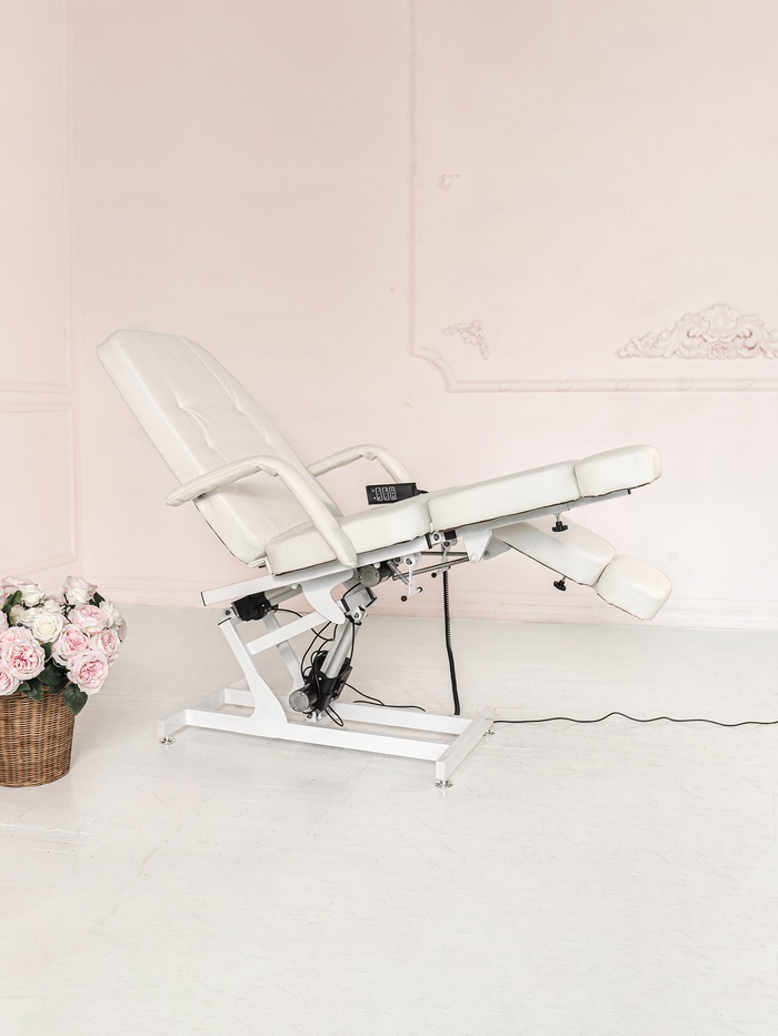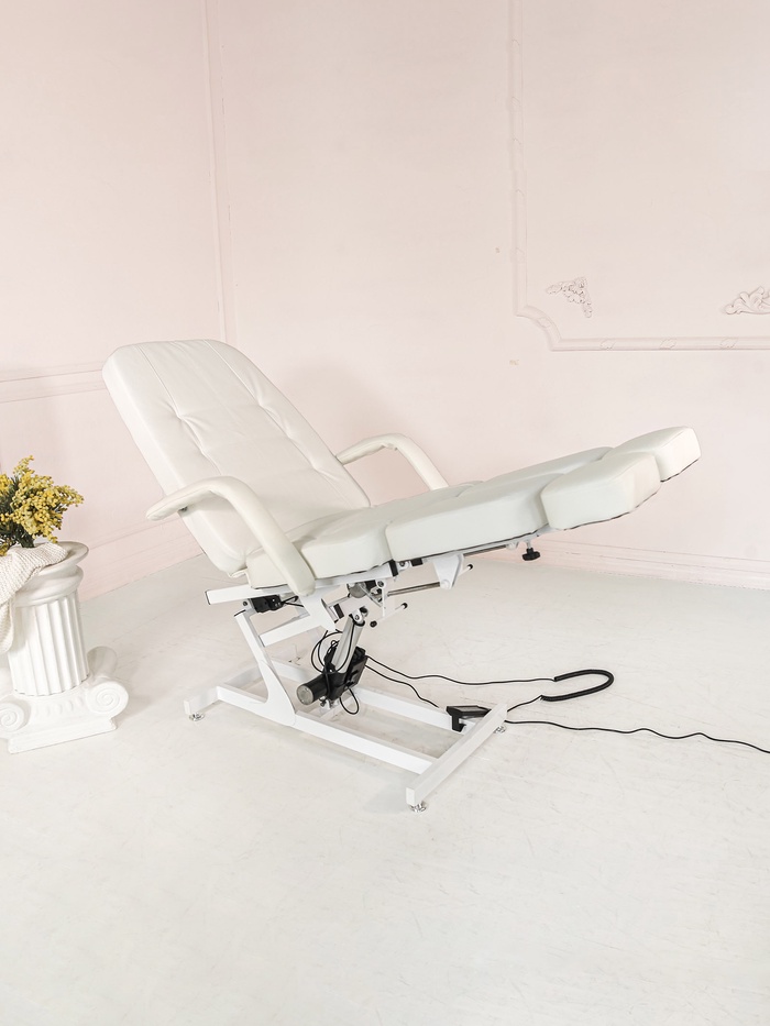Кресло оснащено тремя электроприводами, позволяющими точно регулировать высоту, наклон спинки и подъём сиденья. Плавная настройка помогает быстро адаптировать положение под клиента и процедуру, сохраняя комфорт и правильную рабочую позу мастера.