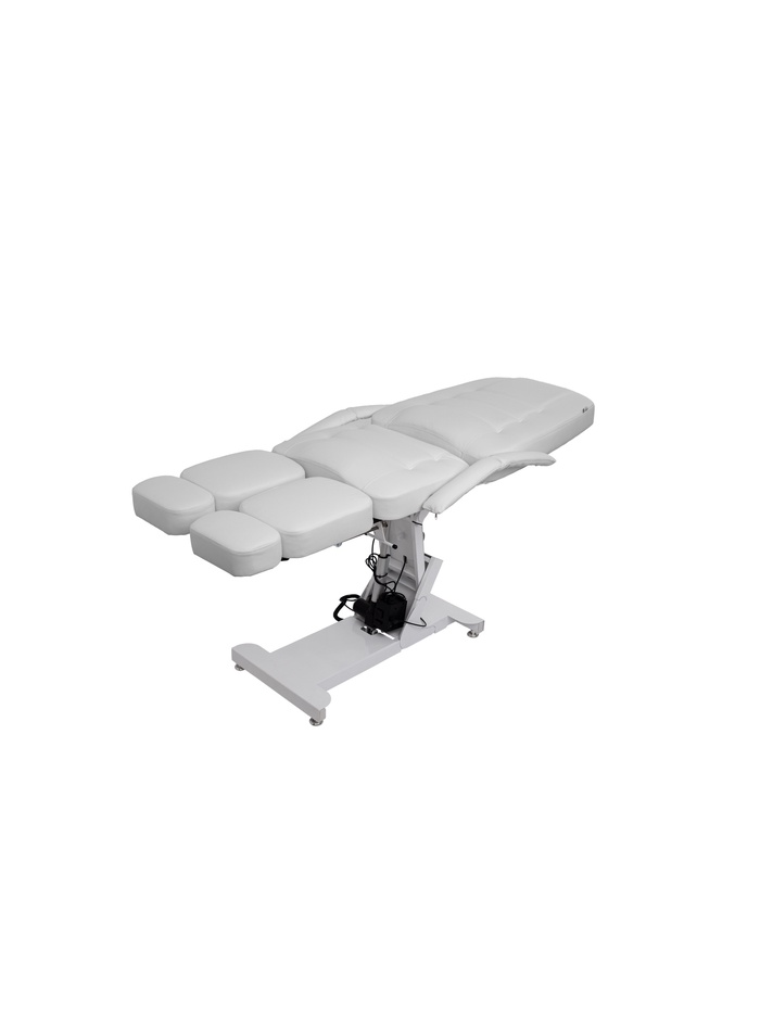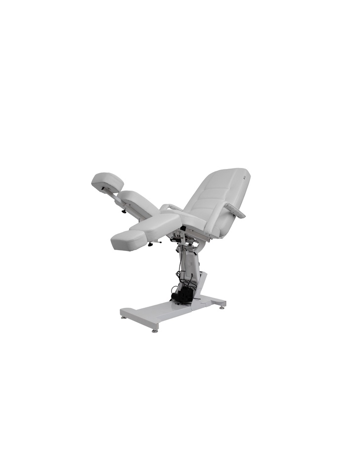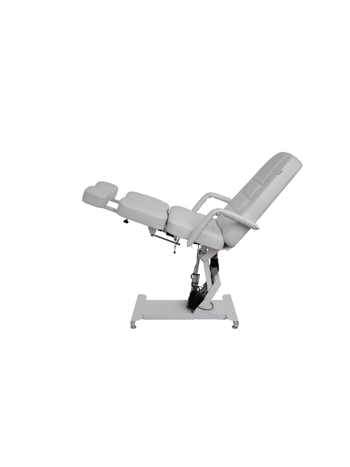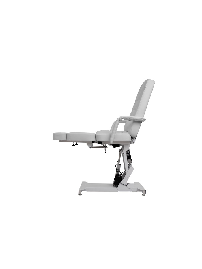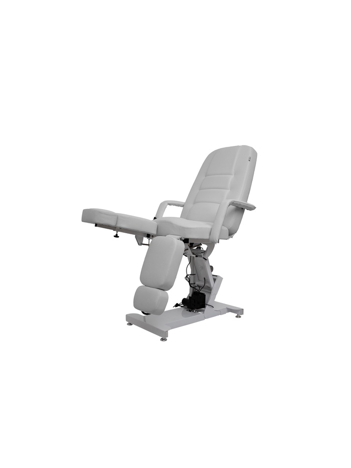 Кресло оснащено тремя электроприводами, позволяющими точно регулировать высоту, наклон спинки и подъём сиденья. Плавная настройка помогает быстро адаптировать положение под клиента и процедуру, сохраняя комфорт и правильную рабочую позу мастера.