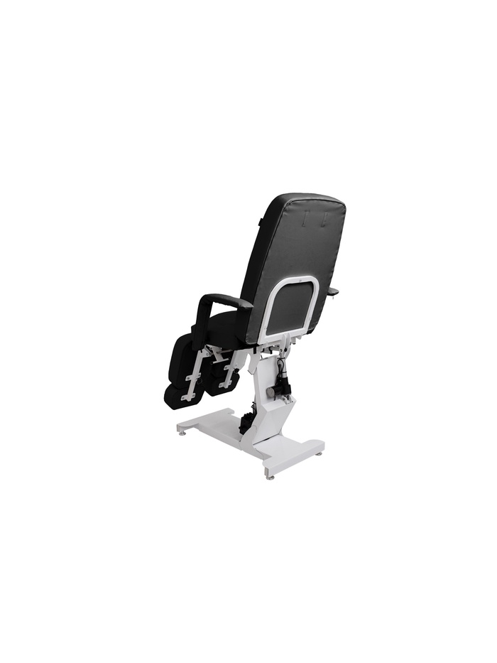 Изменение угла наклона сиденья позволяет подъём сиденья на 15 см а так же разложить кресло с ножной частью в одну плоскость и расположить стопу клиента на высоту 1,35 м. Это открывает удобный доступ к задней поверхности ноги и стопы, снижая нагрузку на мастера и делая процедуру более комфортной.