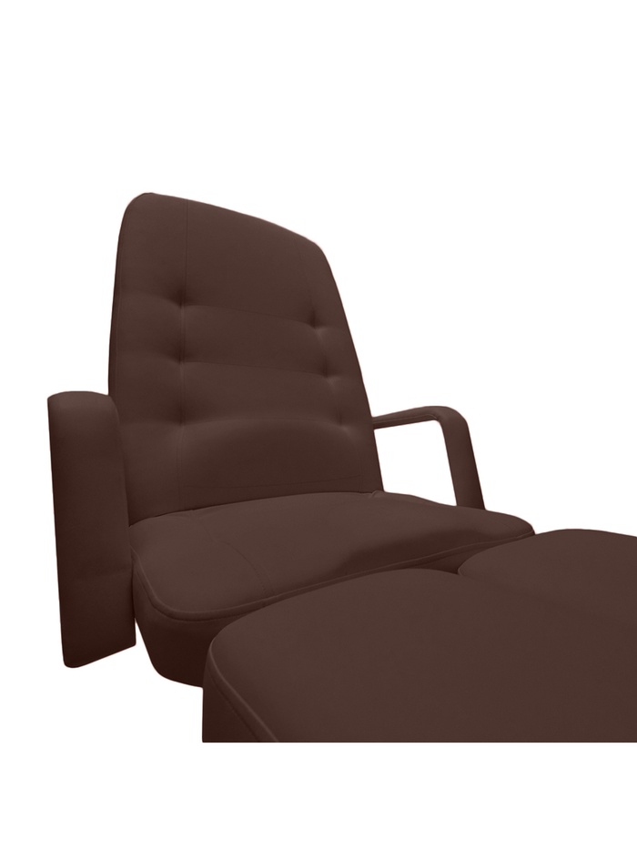 Обивка АНАТОМИЧЕСКАЯ — обивка повышенной комфортности (под тело человека), для длительного нахождения в кресле. Спинная часть и сиденье имеют в поясничной и паховой зонах возвышения. Возвышение в паховой зоне, в сидячем положении, позволяет человеку «не скатываться» вперед, а в поясничной части, осуществляет поддержку поясничной зоны мышц спины. Ножная часть оснащена механизмом удлинения (на 15 см). Покрытие обивки, не скользящая, высококачественная, износостойкая, «дышащая» экокожа производство Турции. Ширина ложа 64 см, длина 185 см, толщина от 9 до 12 см. Съемные подлокотники. Педикюрное кресло «Гармония 1»