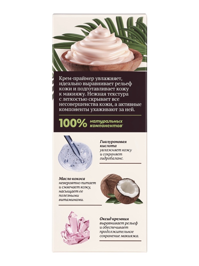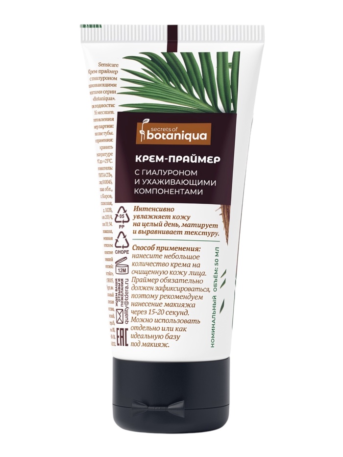 Гиалуроновый крем-праймер Botaniqua — это универсальное средство 2-в-1, которое сочетает в себе уход за кожей и подготовку к макияжу. Он помогает выровнять текстуру кожи, сделать её более гладкой и создать идеальную основу для нанесения декоративной косметики.